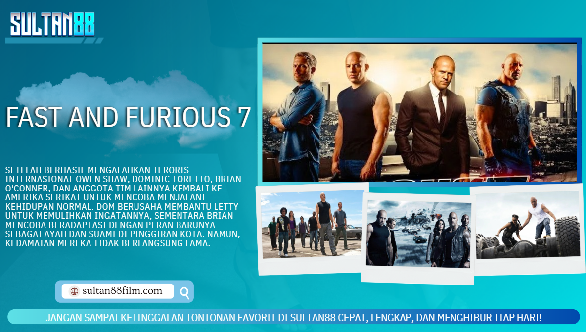 Film Terbaik dari SULTAN88 Seorang pembunuh bayaran dari pasukan khusus, Deckard Shaw, kakak dari Owen Shaw, datang untuk membalas dendam atas kekalahan adiknya. Ia mulai memburu tim Toretto satu per satu. Awalnya, ia membunuh Han di Tokyo, kemudian menyerang Hobbs di kantornya, yang membuat Hobbs dirawat di rumah sakit. Dom pun menyadari bahwa satu-satunya cara untuk menghentikan Deckard adalah dengan mengalahkannya terlebih dahulu.