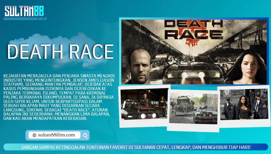 Nonton Santai dan nikmati film favoritmu di SULTAN88. Film Death Race berlatar di masa depan yang kejam, di mana kejahatan merajalela dan penjara swasta menjadi industri yang menguntungkan. Jensen Ames (Jason Statham), seorang mantan pembalap, dijebak atas kasus pembunuhan istrinya dan dijebloskan ke penjara Terminal Island, tempat para kriminal paling berbahaya dikumpulkan.