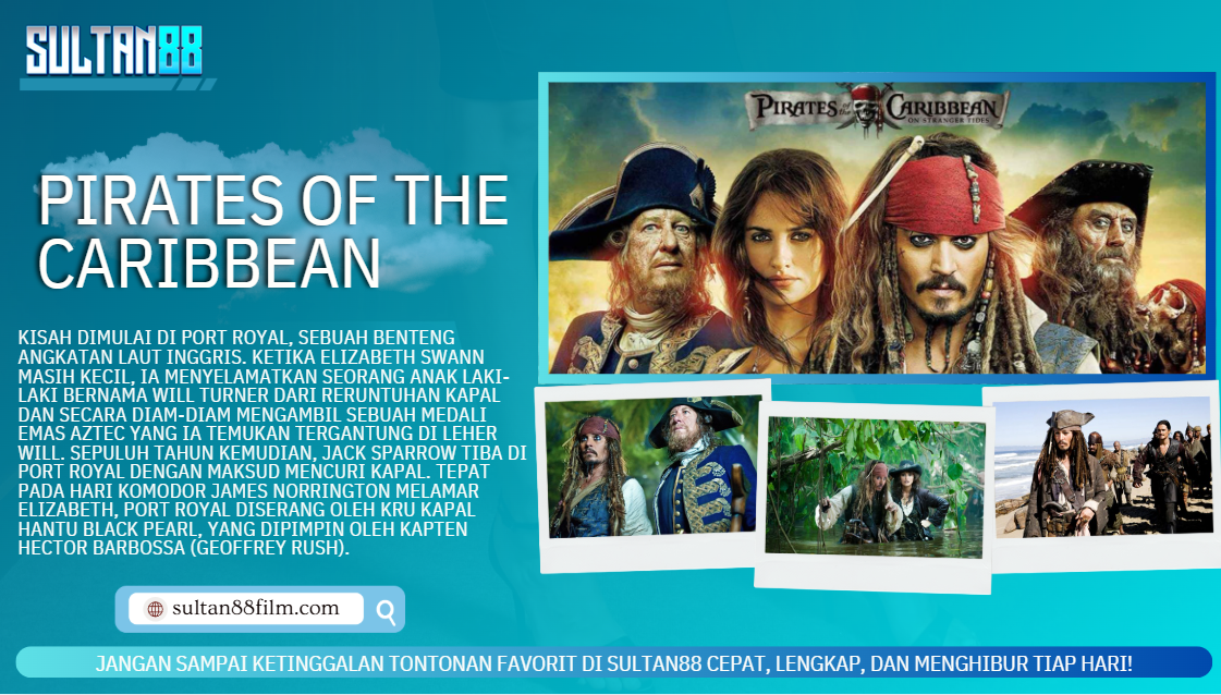 Nonton Santai dan nikmati film favoritmu di SULTAN88. Waralaba film Pirates of the Caribbean memiliki lima film, tetapi film pertamanya, The Curse of the Black Pearl (2003), adalah film yang memulai seluruh petualangan dan memperkenalkan karakter-karakter ikonik.