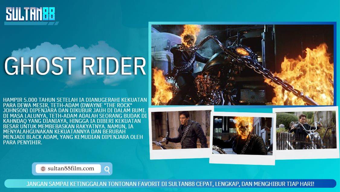 Nonton Film di SULTAN88 Setiap hari Film Ghost Rider mengisahkan tentang Johnny Blaze (Nicolas Cage), seorang pengendara motor akrobatik yang terkenal dengan aksi-aksi berbahaya dan nekatnya. Di masa lalunya, saat ia masih remaja, ayahnya didiagnosis menderita kanker. Dalam keputusasaan, Johnny membuat perjanjian dengan Iblis Mephisto (Peter Fonda) untuk menyelamatkan nyawa ayahnya. Sebagai imbalannya, Johnny harus menyerahkan jiwanya.