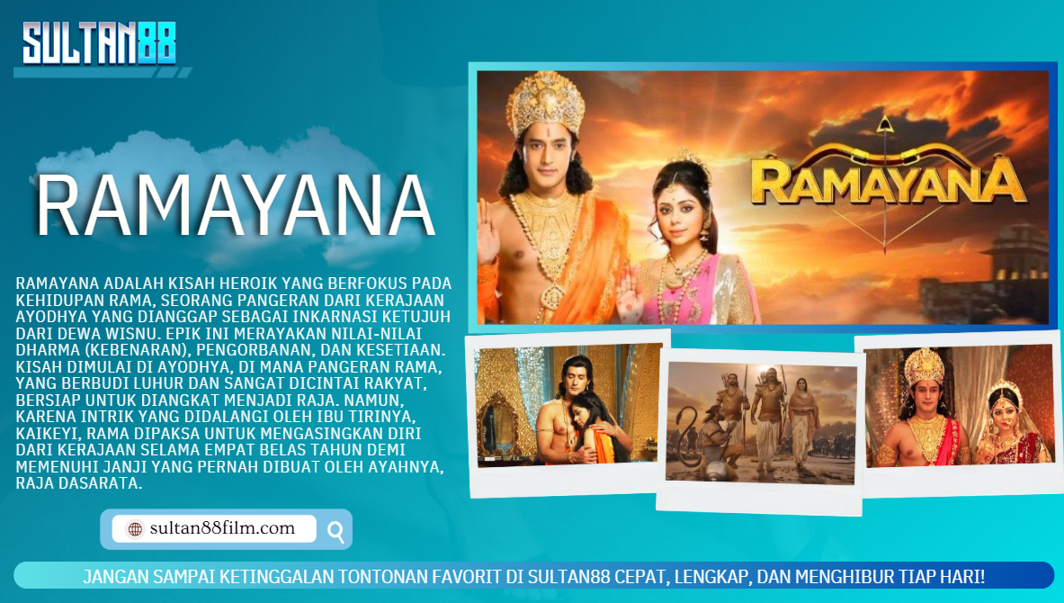 Nonton Santai dan nikmati film favoritmu di SULTAN88. Ramayana adalah kisah heroik yang berfokus pada kehidupan Rama, seorang pangeran dari Kerajaan Ayodhya yang dianggap sebagai inkarnasi ketujuh dari Dewa Wisnu. Epik ini merayakan nilai-nilai Dharma (kebenaran), pengorbanan, dan kesetiaan.