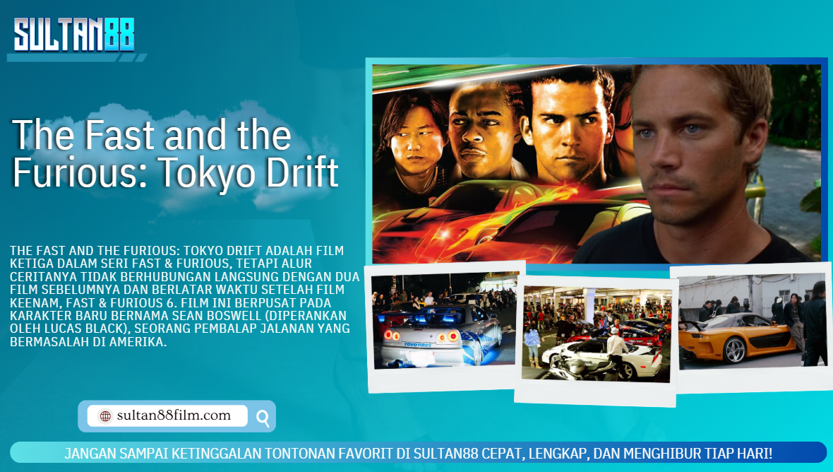 The Fast and the Furious: Tokyo Drift adalah film seru dari SULTAN88 ketiga dalam seri Fast & Furious, tetapi alur ceritanya tidak berhubungan langsung dengan dua film sebelumnya dan berlatar waktu setelah film keenam, Fast & Furious 6. Film ini berpusat pada karakter baru bernama Sean Boswell (diperankan oleh Lucas Black), seorang pembalap jalanan yang bermasalah di Amerika.