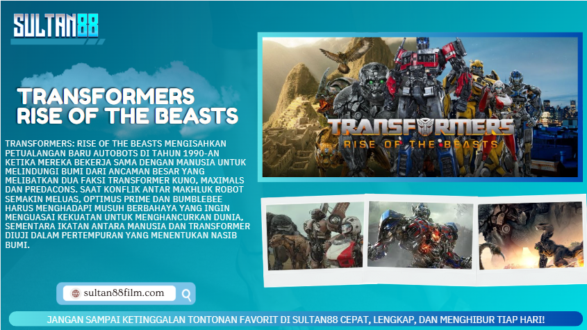 Jika kamu pencinta film aksi fiksi ilmiah dengan cerita seru, visual kelas atas, dan karakter ikonik, Transformers: Rise of the Beasts adalah tontonan yang wajib masuk daftar. Jangan lewatkan keseruannya dan rasakan sendiri kebangkitan kekuatan kuno yang mengguncang dunia Transformers. Yuk, siapkan camilan favoritmu dan ajak teman atau keluarga untuk nonton Transformers: Rise of the Beasts di SULTAN88, tempat hiburan yang siap menemani momen nontonmu jadi makin seru! 🎬🔥